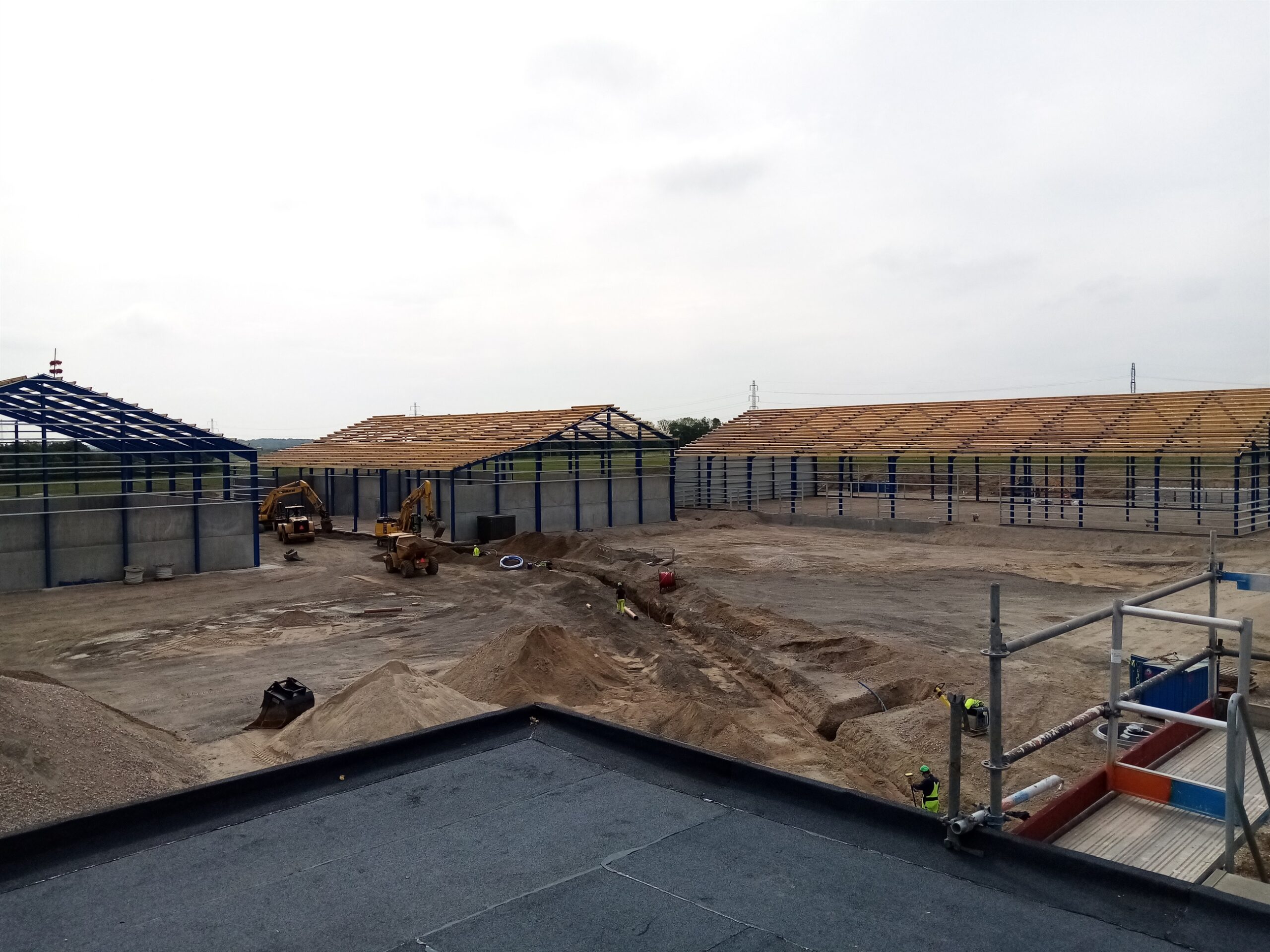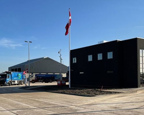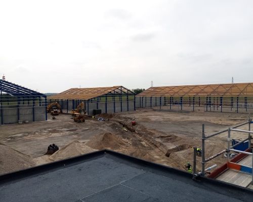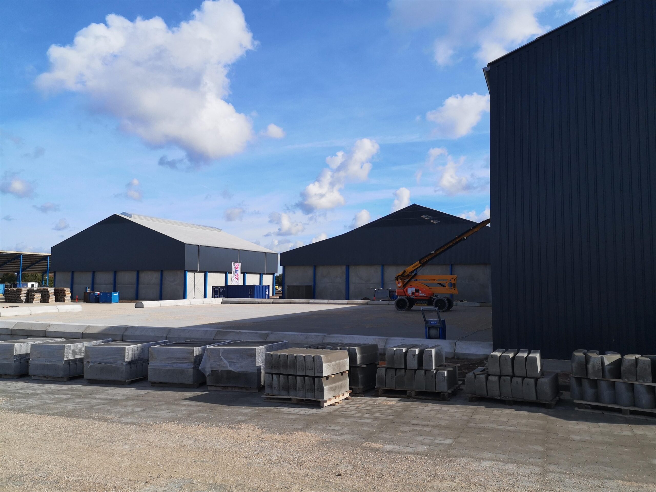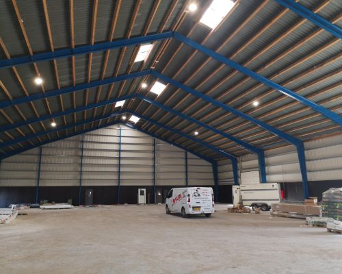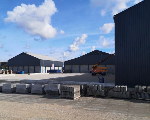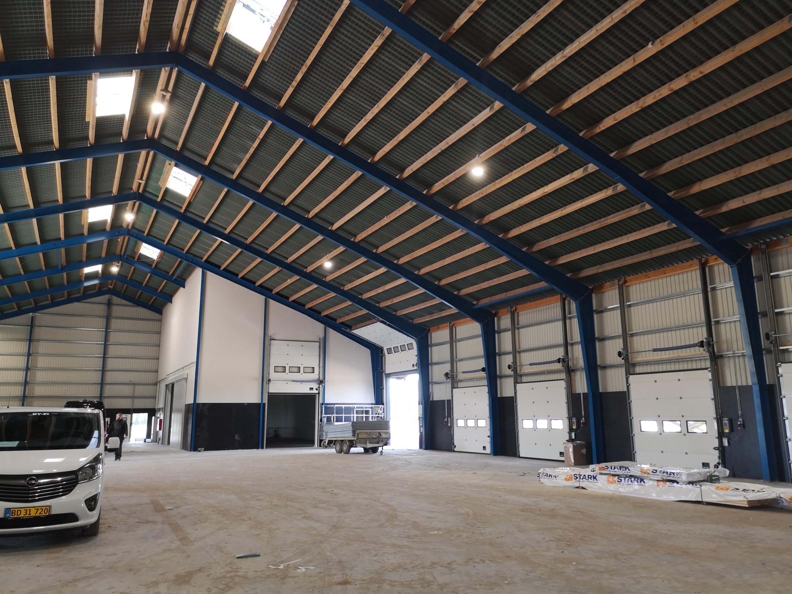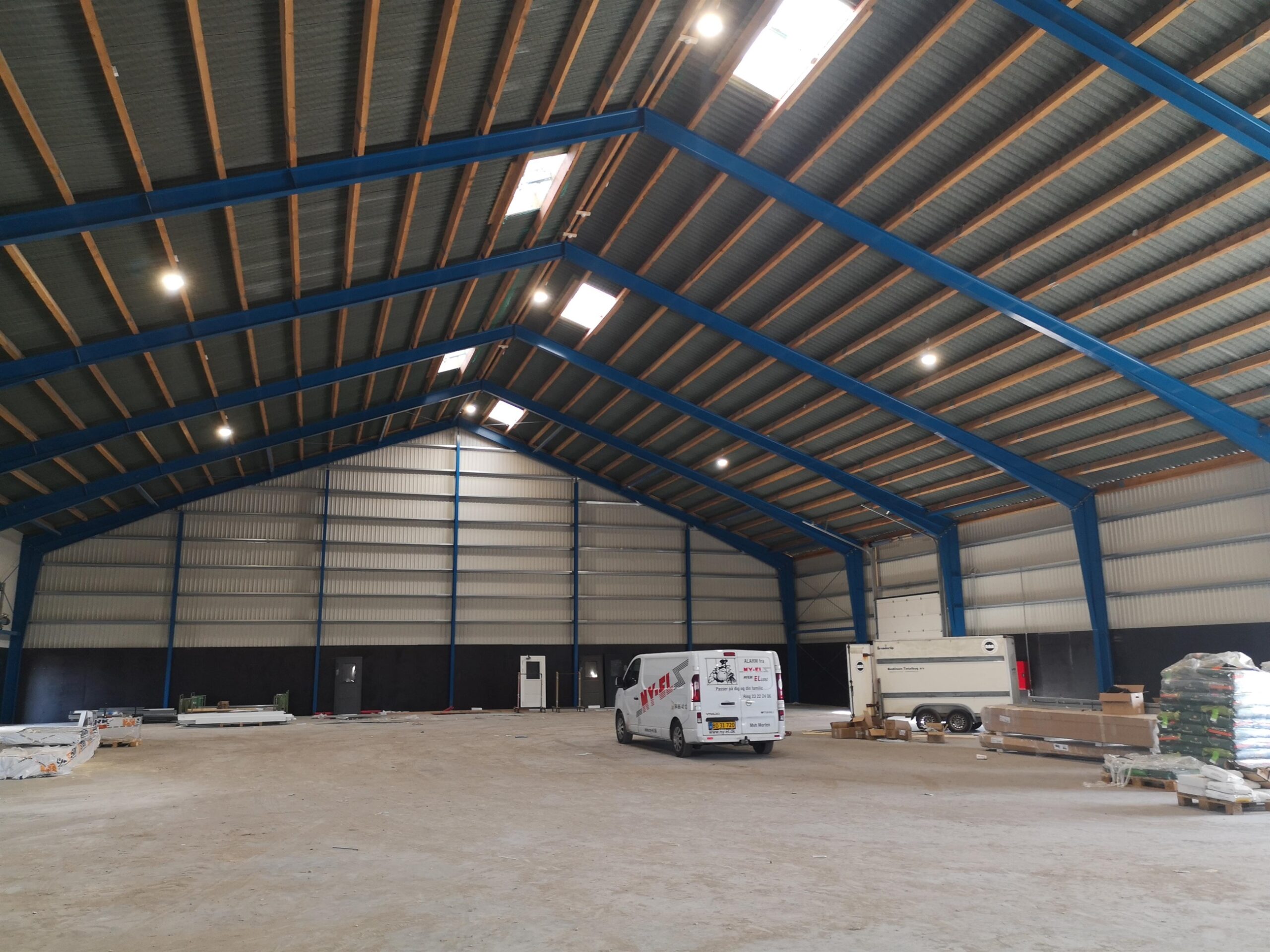 Erhvervsbyggeri:Byggeriet består af 3 stålhaller samt en ståloverdækning og en administrationsbygning udført i beton. Udført i beton og stålplader, trapez-plader og sandwichpaneler