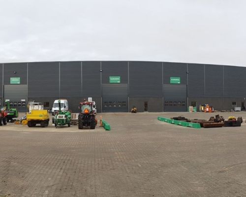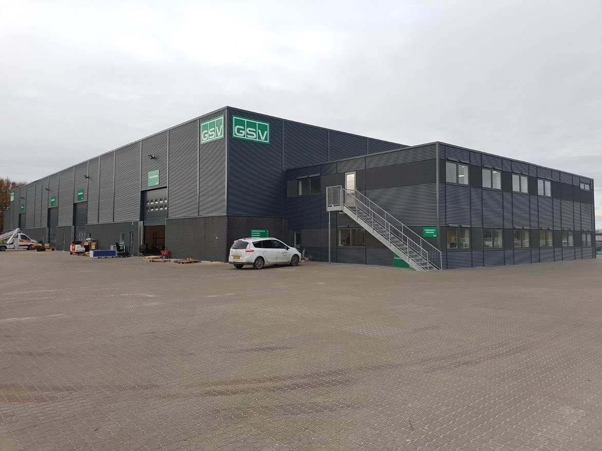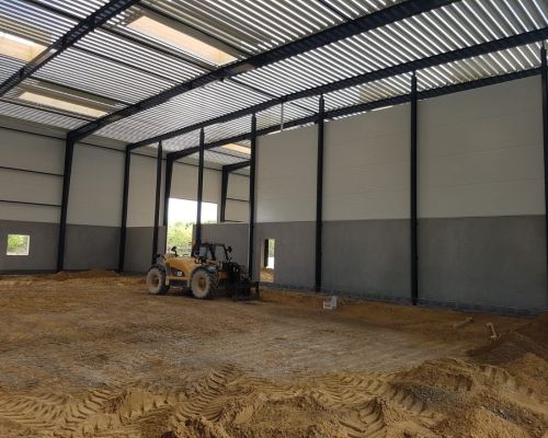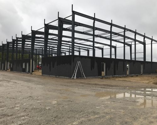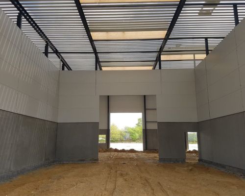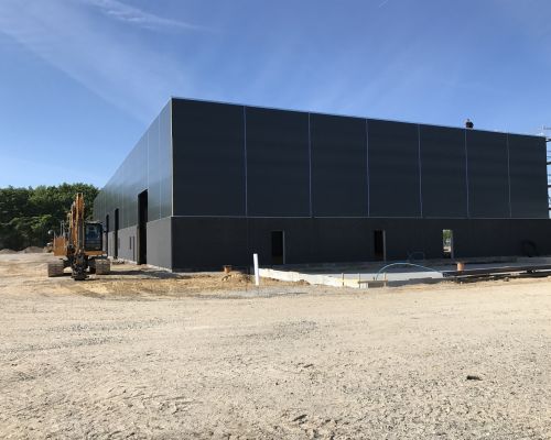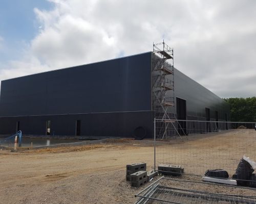 Erhvervsbyggeri:Administration, værksted og maskinhal opført i betonsandwich elementer og sandwichpaneler