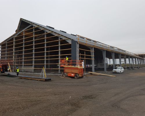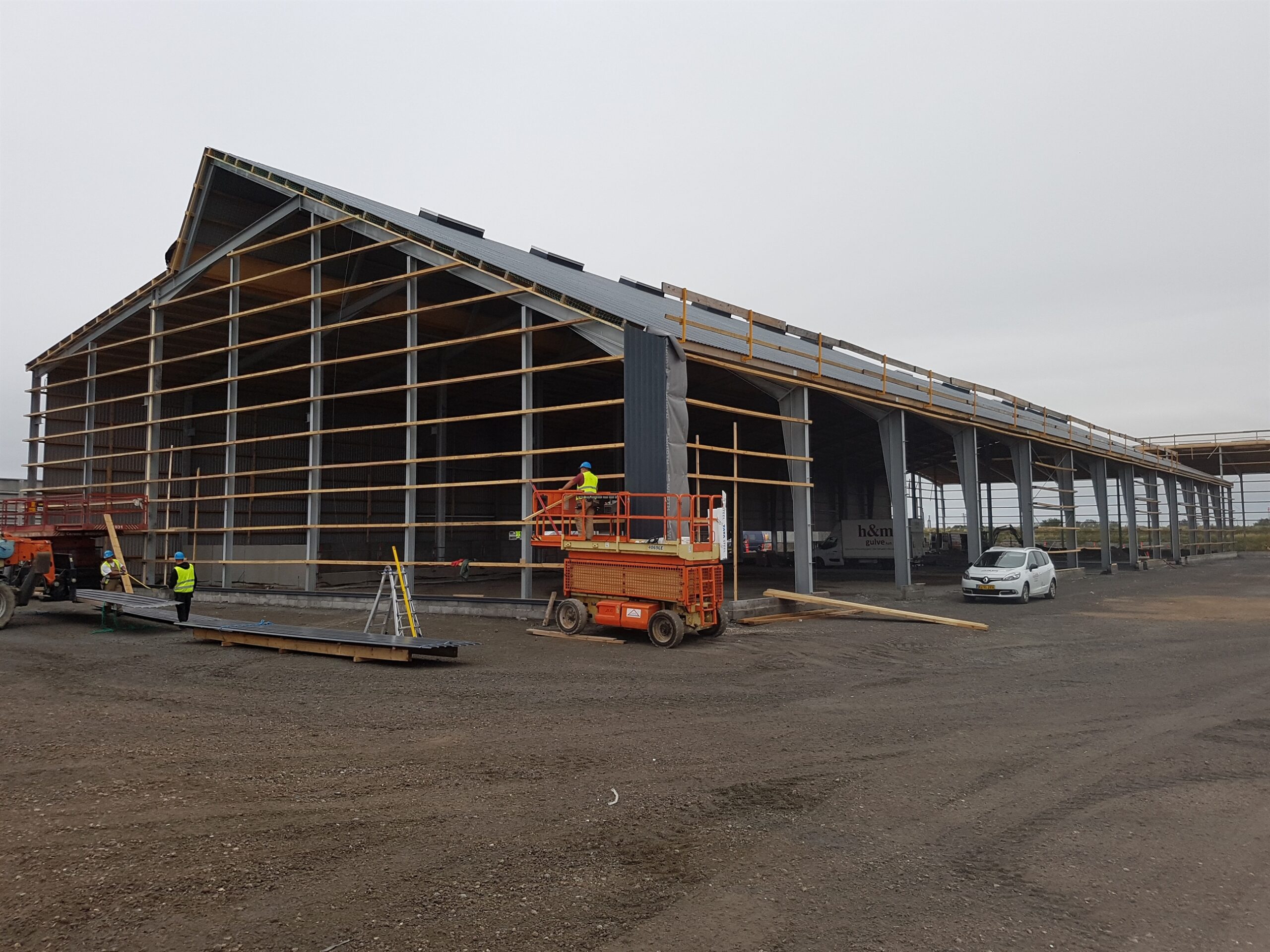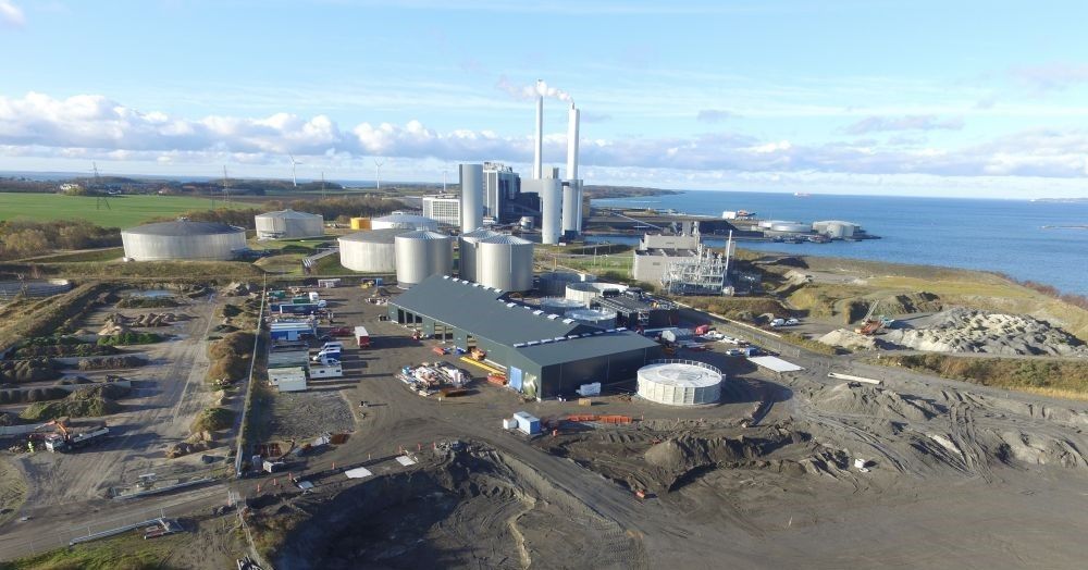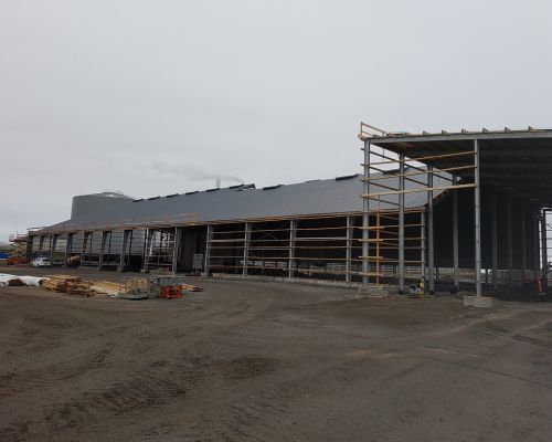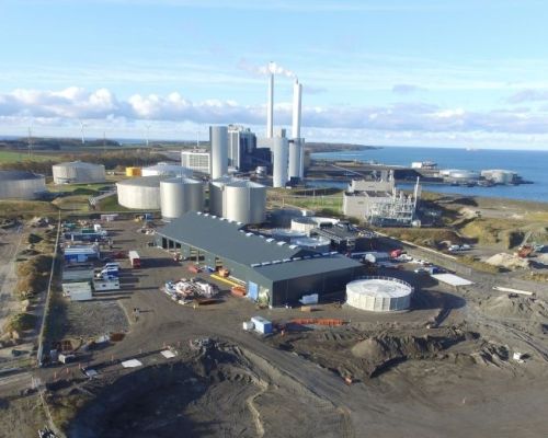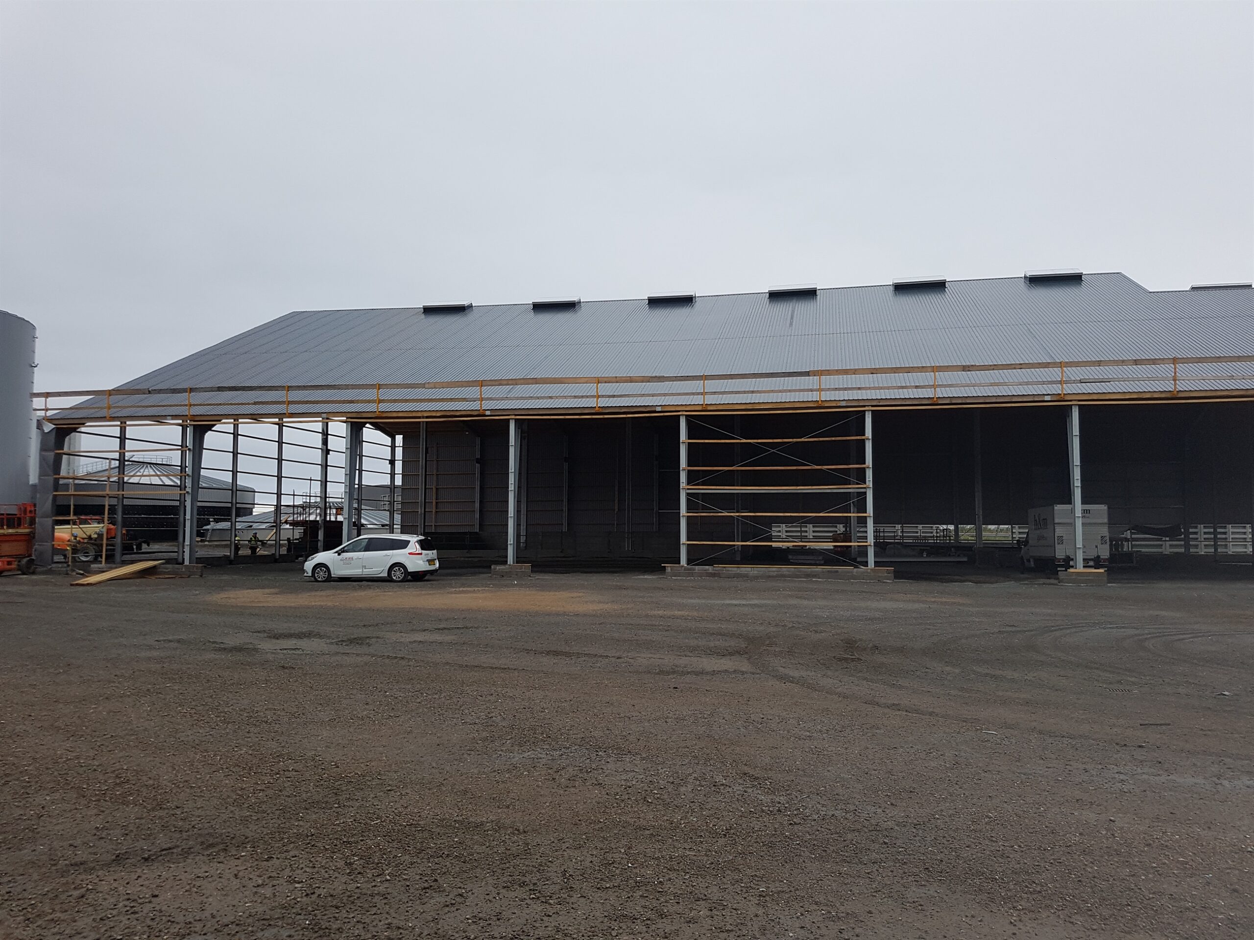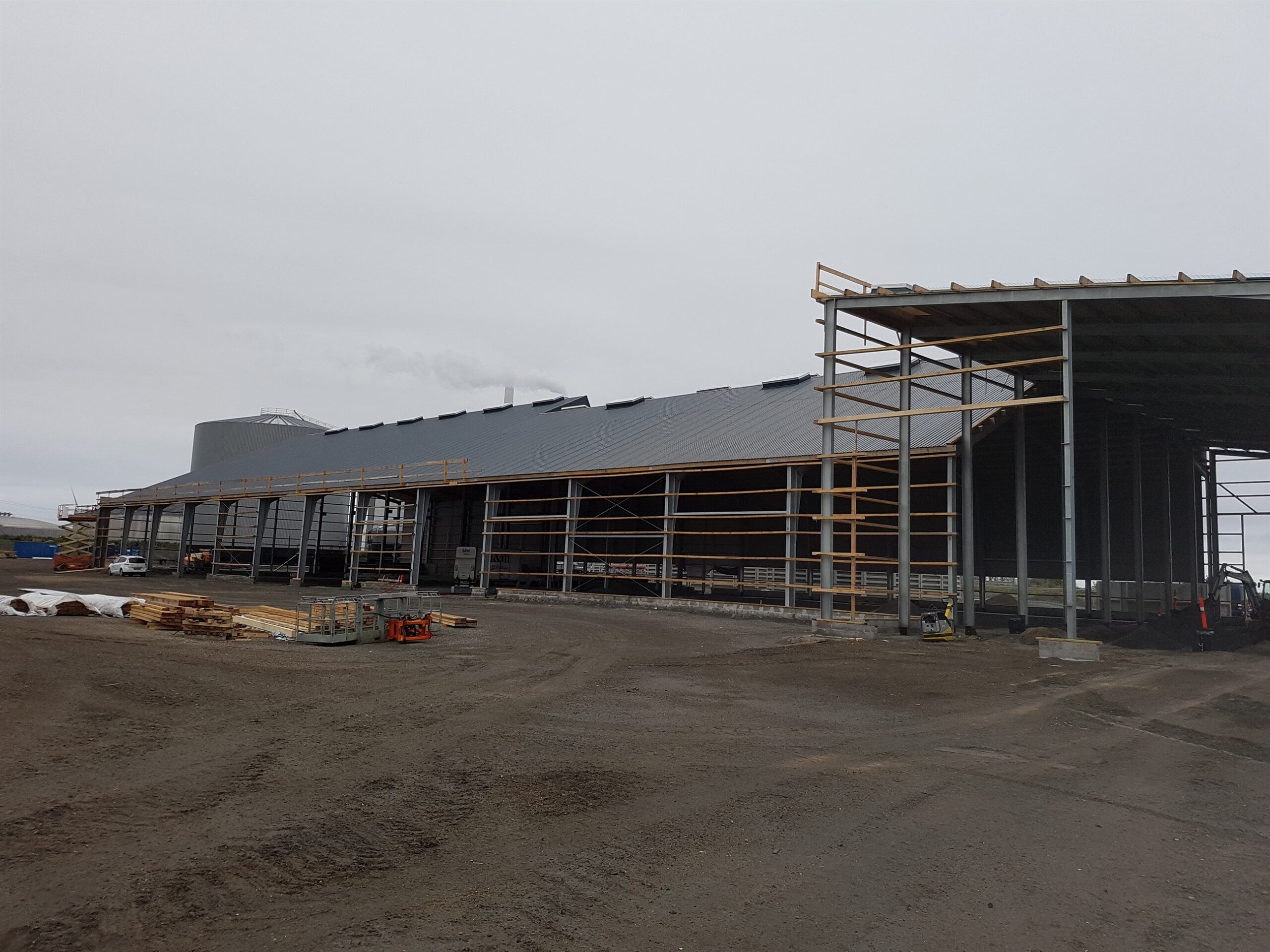 Erhvervsbyggeri:Biogasanlæg, 2 huse mellem tanke samt beklædning af tanke